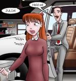 Julia Harvey awakens one morning and after bringing coffee to her father, Richard Harvey, fixes a problem with his computer.